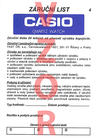 Důležité Upozorňujeme, že nyní budete přesměrováni na stránky společnosti Fast ČR, a. Please note that you now get linked to the an web presence of FAST - a CASIO Europe distributor. Distributor Casio Computer Co. Hodinky CASIO , SECCO, LENNOX. Při koupi hodinek CASIO vyžadujte vyobrazený záruční list. Tento doklad Vám umožní obrátit se přímo na jediné autorizované servisní středisko v České Republice.